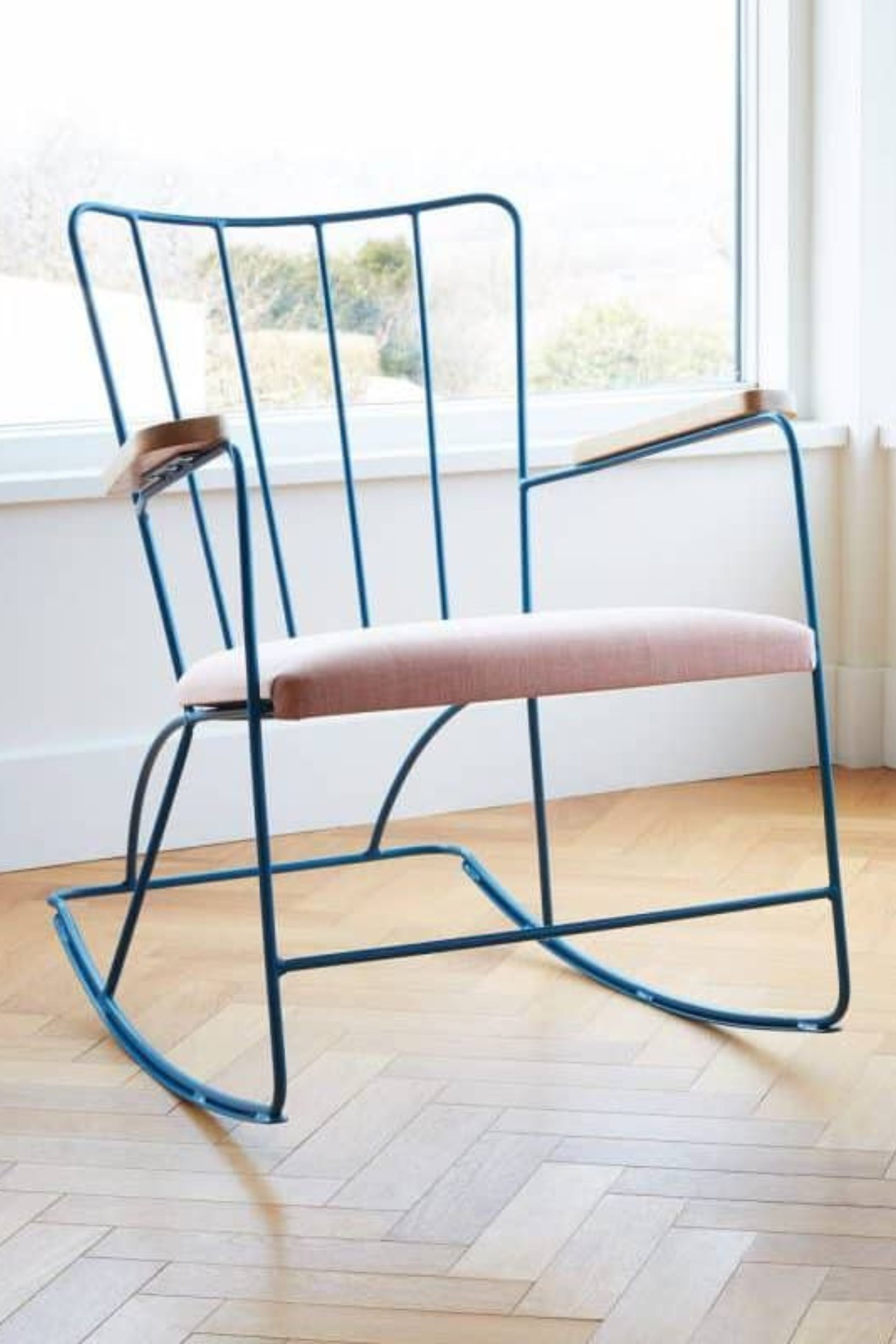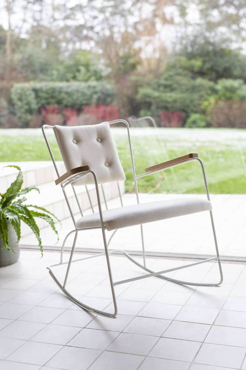 The Rocker, designed by Ernest Race in 1948, reimagines the classic rocking chair with unexpected refinement and playful poise. Its slender steel-rod frame and gentle curves impart visually light elegance, while a web-sprung removable seat and optional back cushion deliver the comfort audiences expect.